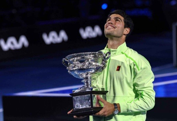 A prateleira de troféus de Carlos Alcaraz está completa. Número 1 do mundo, o espanhol venceu Novak Djokovic por 3 sets a 1, de virada, para se sagrar campeão do Australian Open pela primeira vez na carreira. A partida de mais de três horas de duração, neste domingo (1º/2), em Melbourne, com parciais de 2x6, 6x2, 6x3 e 7x5, fez o tenista de 22 anos e 272 dias se tornar o mais jovem a conquistar todos os títulos de Grand Slam, quebrando o recorde de quase um século pertencente ao estadunidense Don Budge, que preencheu o currículo três dias antes de fazer 23 anos.