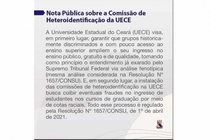 Nota da Universidade Estadual do Ceará: