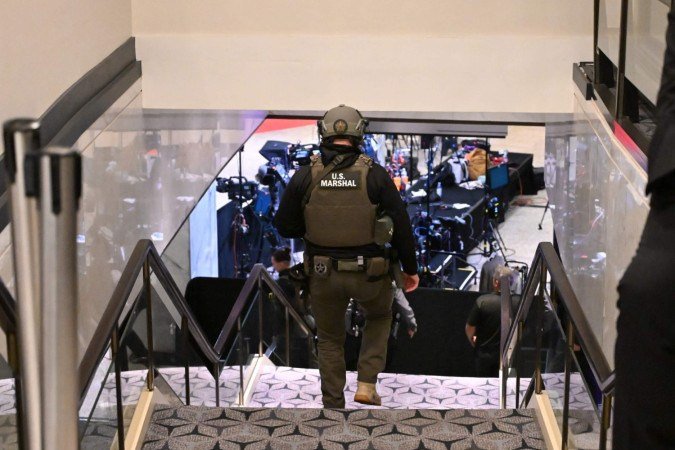 Commandos secure a street as they prepare to escort a convoy of special guests after shots were reportedly fired during the White House Correspondents' dinner at the Washington Hilton in Washington, DC, on April 25, 2026. Shots were allegedly fired as US President Donald Trump attended a press dinner in Washington on Saturday night, witnesses and AFP reporters said as loud bangs were heard at the hotel venue. (Photo by Roberto Schmidt / AFP) Foto: AFP -