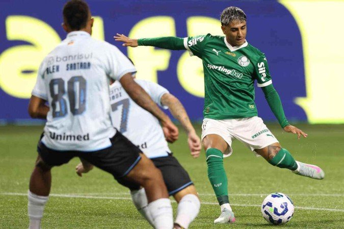 BRAITHWAITE – Se movimentou, mas não conseguiu sair da boa marcação palmeirense. Ainda assim, cobrou uma falta com perigo no primeiro tempo. NOTA: 6,0. Foto: Foto: Lucal Uebel/Grêmio