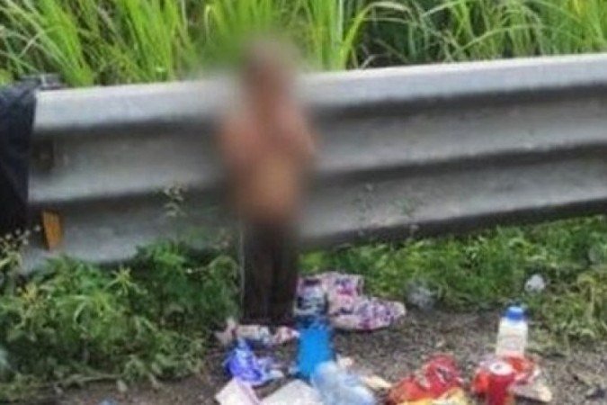 "Com as costas nuas, ele foi abandonado na beira da estrada, entre a barreira de metal, ao lado de roupas no chão, mochilas e embalagens de comida. Nenhum dos adultos afirmou ser parente da criança", diz o INI.
