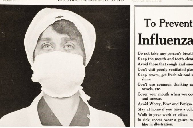 Um último hábito de saúde que surgiu durante a pandemia de gripe foi o uso de máscaras, embora isso não tenha continuado ao longo do tempo.