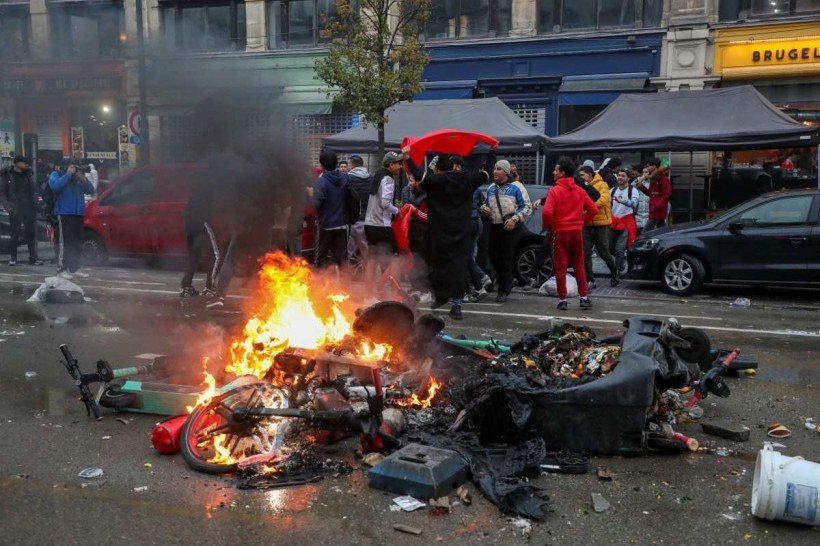 Vários atos de vandalismo foram registrados neste domingo (27) em Bruxelas após a vitória do Marrocos sobre a Bélgica na Copa do Mundo, com "dezenas de pessoas" atacando mobiliário urbano e policiais.