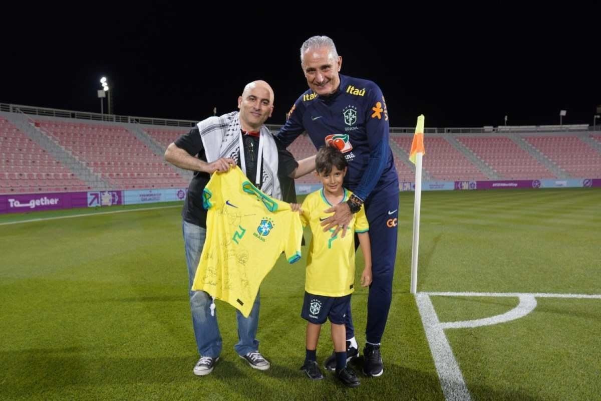 Tite encontra torcedor palestino que carregou seu neto no colo; assista
