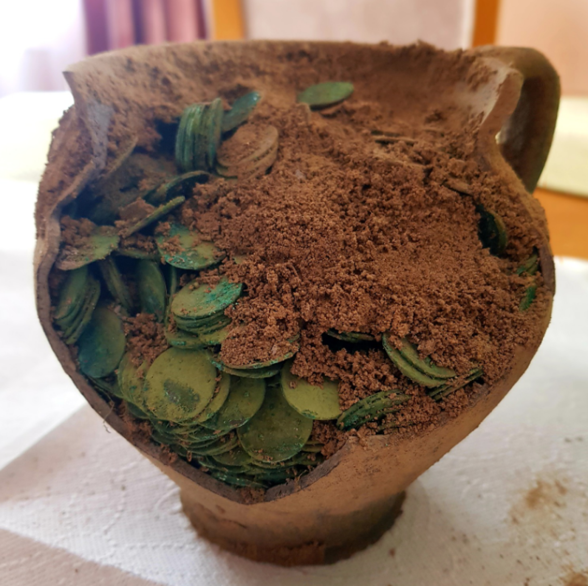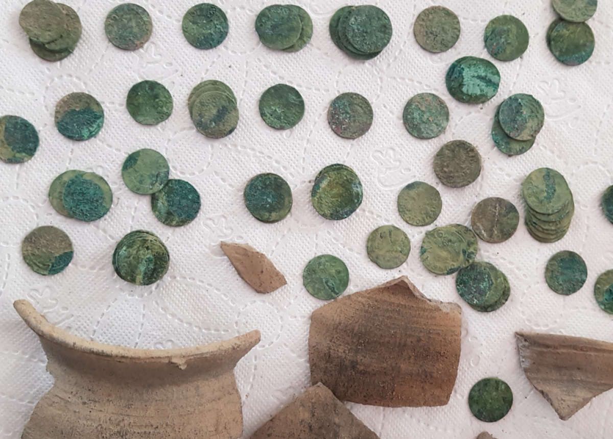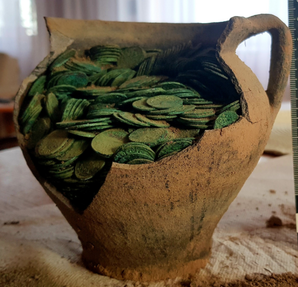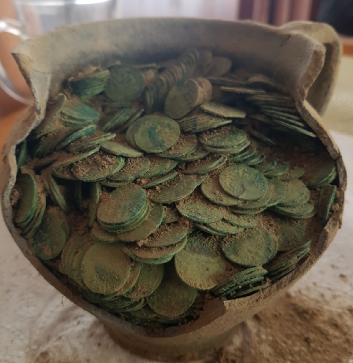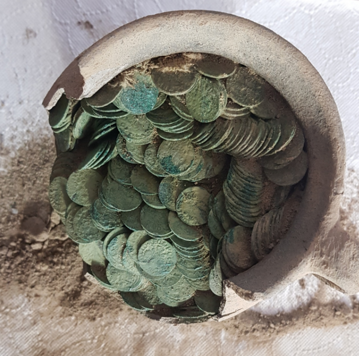 Também foram encontradas dentro da jarra peças de tecido e de cerâmica. De acordo com a agência de conservação, a inspeção no local mostrou que o tesouro foi enterrado de forma proposital, pois estava na superfície do solo.