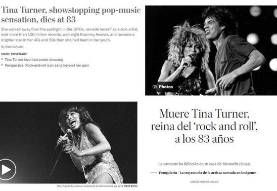 O jornal americano The Wall Street Journal descreveu Tina Turner como "a artista cujo poder de cantar e dançar a levou de uma revista de música R&B ao lado do marido Ike Turner ao auge do estrelato pop por conta própria", além de ressaltar os prêmios e a trajetória da cantora. O The Washington Post, também dos Estados Unidos, abordou a saga pessoal, a luta e o renascimento da cantora, além de destacar os hits.