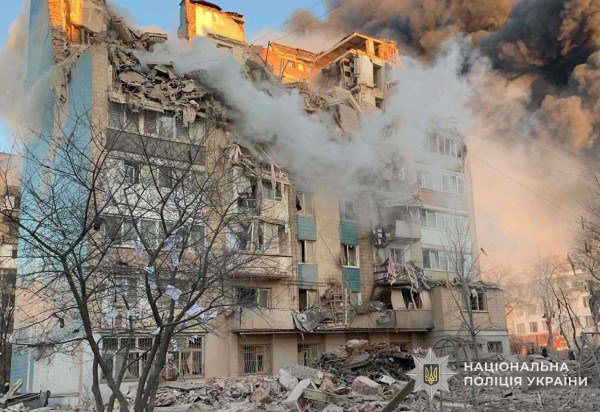 Os ataques atingiram dois blocos de apartamentos de vários andares na cidade de Ternopil, região oeste do país, informou o ministro das Relações Exteriores, Andrii Sibiga, nas redes sociais.