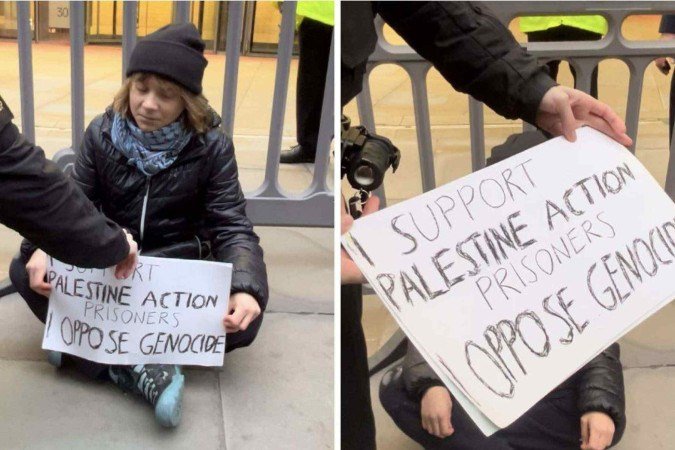 A prisão ocorreu durante o protesto intitulado “Prisioneiros pela Palestina”, realizado em frente aos escritórios da Aspen Insurance, na capital britânica. A manifestação reunia ativistas contrários à ofensiva israelense em Gaza e à detenção de membros de grupos pró-Palestina.