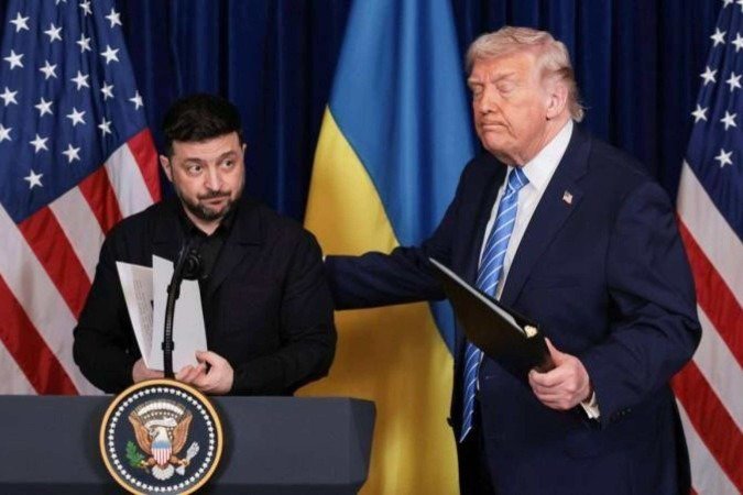 Uma das declarações que mais chamou a atenção dos presente à coletiva de imprensa de Trump e Zelensky ocorreu quando o presidente americano foi questionado sobre a ajuda da Rússia na reconstrução da Ucrânia após a guerra.