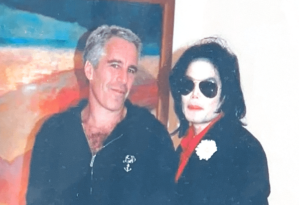 Em uma das fotos recém-divulgadas, Epstein é fotografado com Michael Jackson. O ídolo pop está usando um terno e Epstein aparece com um moletom com zíper.