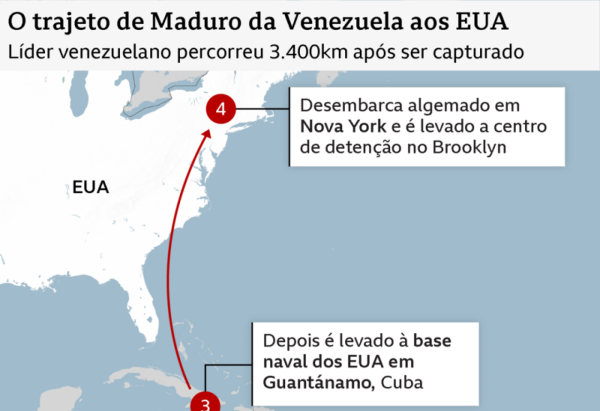 O presidente da Venezuela, Nicolás Maduro, e sua esposa, Cilia Flores, comparecerão a um tribunal federal em Manhattan nesta segunda (5/1) às 12h (14h no horário de Brasília), após terem sido capturados pelos Estados Unidos durante um ataque surpresa nas primeiras horas de sábado (3/1).