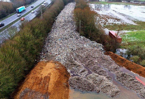 Acredita-se que o aterro em Kidlington guarde cerca de 21 mil toneladas de resíduos em uma pilha que chega a 150 metros de comprimento e seis metros de altura. O monte é composto por plásticos triturados, isopor, pneus e outros itens domésticos.