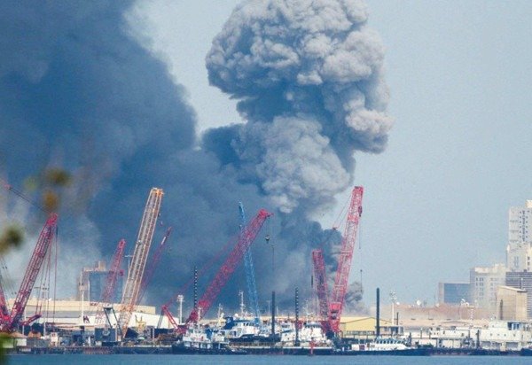 Imagens gravadas por testemunhas, postadas nas redes sociais e verificadas pela BBC mostram uma grande explosão nessa base naval.