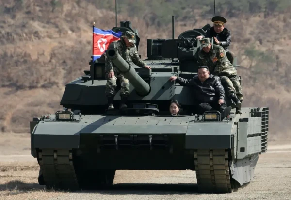 Em meio às especulações sobre a sucessão na Coreia do Norte, Kim Ju-ae, filha do ditador de apenas 13 anos, foi mostrada pela Korean Central News Agency (KCNA) nesta quinta-feira (19/3) dirigindo o novo tanque Cheonma-2, modernização do carro de combate apresentado pelo regime, ao lado do pai, Kim Jong-un.