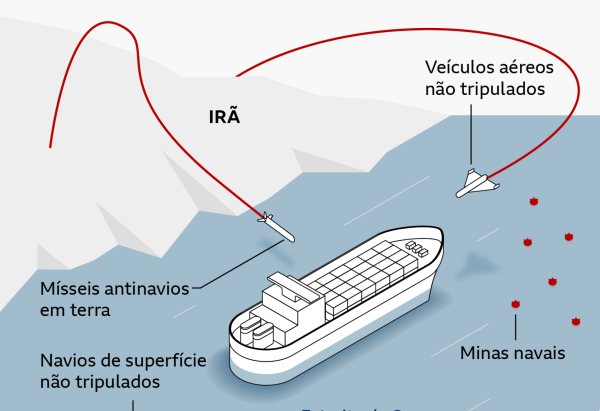 As características de Ormuz, com uma profundidade máxima de cem metros e canais de navegação de apenas três quilômetros em cada direção, permitem que o bloqueio seja efetivado até mesmo por meio de drones, afirma o professor.