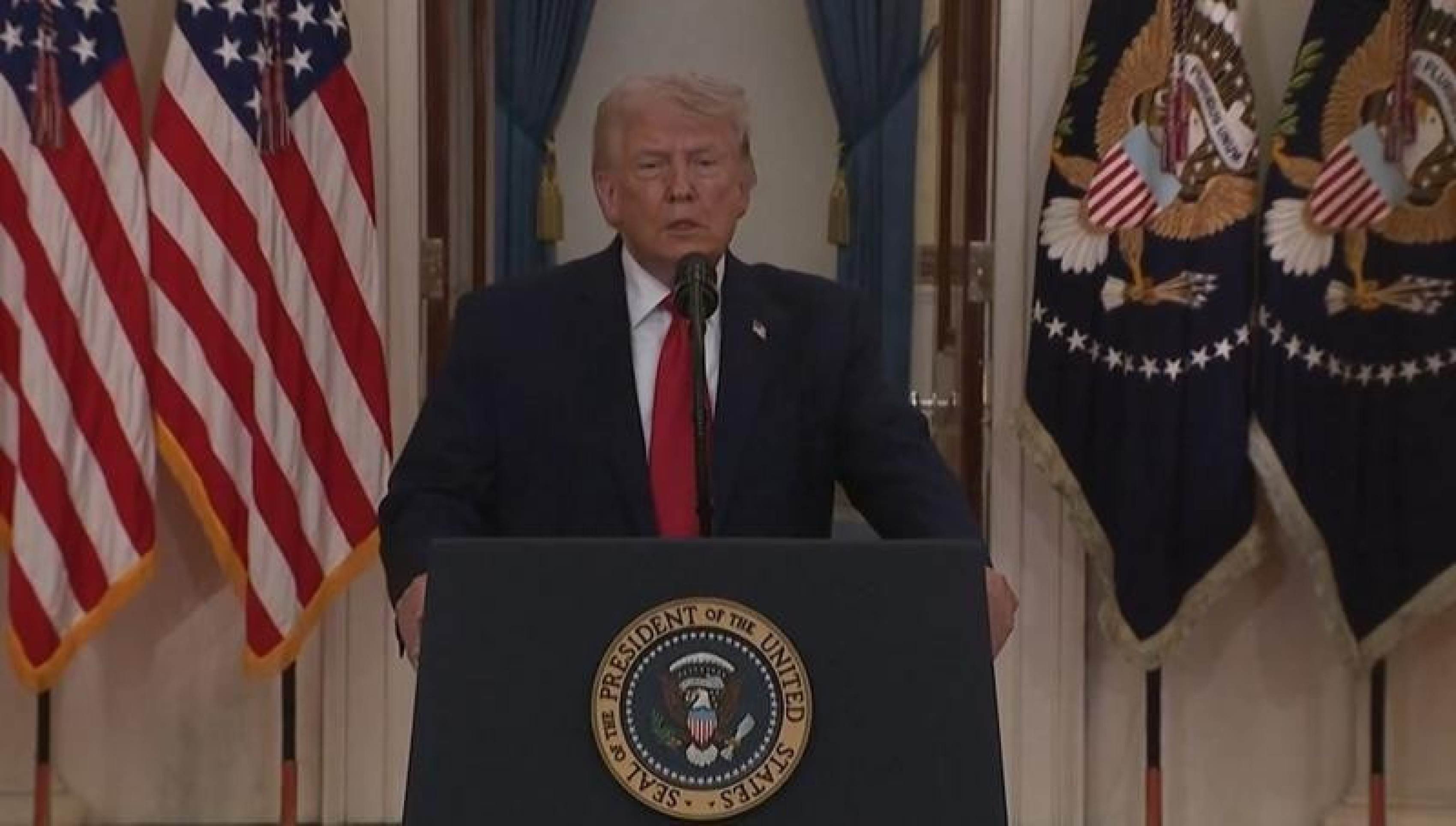 O presidente americano afirmou que a capacidade do Irã de lançar mísseis e drones foi drasticamente reduzida. "A Marinha do Irã acabou, sua força aérea está em ruínas, seus líderes, a maioria deles… estão agora mortos", disse.