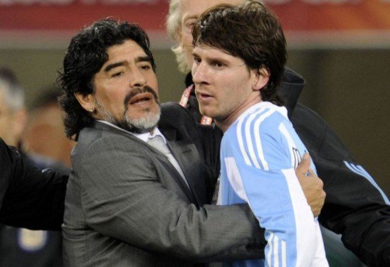 Vinte e sete anos mais jovem, Messi conheceu Maradona de ouvir falar, mas também de com ele andar na Copa de 2010. Foi comandado pelo técnico no Mundial da África do Sul. Fracassaram de mãos dadas nas quartas de final naquela derrota por 4 x 1 para a Alemanha.