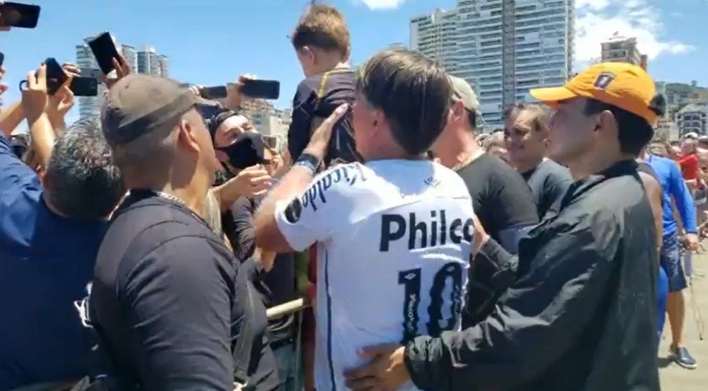 As declarações foram feitas em transmissão ao vivo pelas redes sociais do presidente, enquanto ele caminhava em direção a uma multidão na cidade de Praia Grande, litoral de São Paulo. O presidente passa o feriado de fim de ano em Guarujá (SP), que fica ao lado de Praia Grande, para onde se deslocou na manhã desta quarta-feira em uma moto aquática. Sem máscara, ele causou aglomeração cumprimentando populares, tirando fotos e pegando crianças no colo. Grande parte dos banhistas que falavam com o presidente também estava sem máscara.
