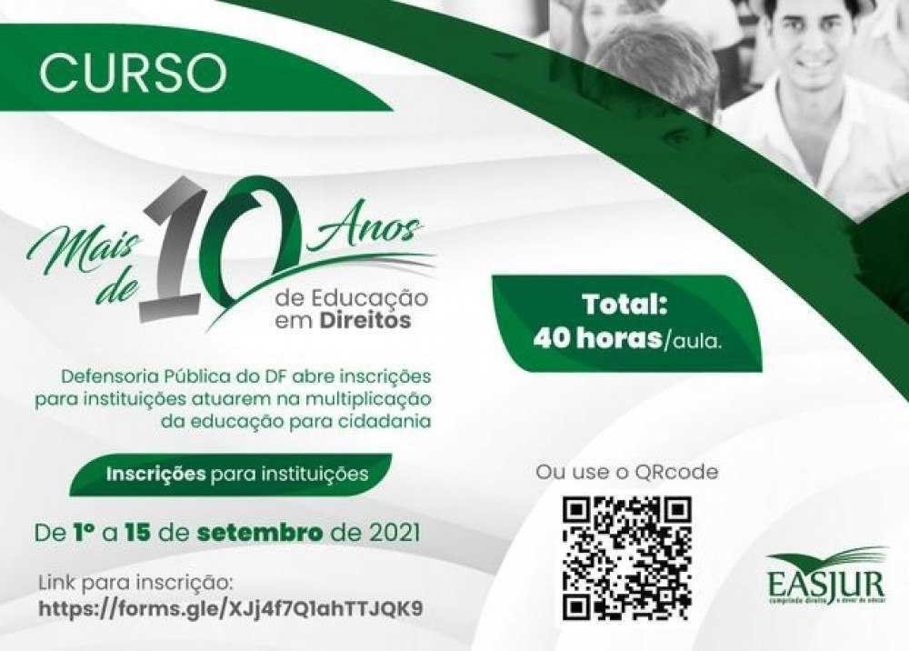 Curso gratuito sobre educação para cidadania é ofertado pela Defensoria Pública do DF