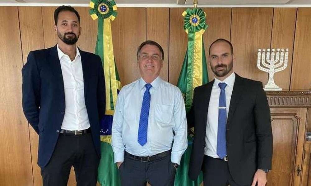 Maurício Souza, do vôlei, presenteia Eduardo e Jair Bolsonaro com camisa