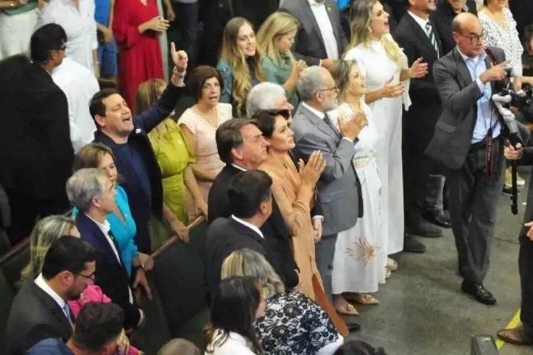 Michelle e o candidato a governador de Minas Gerais, senador Carlos Viana (PL), que são evangélicos, louvaram e cantaram desde o início, ao passo que Bolsonaro, católico, se manteve silencioso e formal, não deixando de aplaudir às pregações e de sorrir também em alguns momentos.