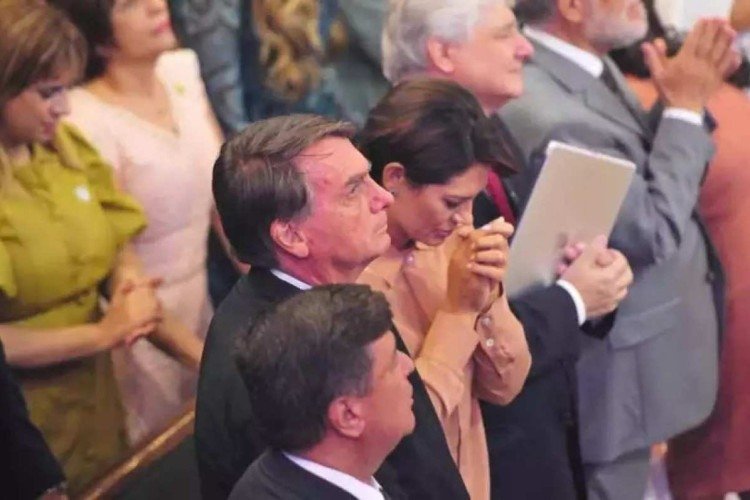 Michele e o candidato a governador de Minas Gerais, senador Carlos Viana (PL), que são evangélicos, louvaram e cantaram desde o início, ao passo que Bolsonaro, católico, se manteve silencioso e formal, não deixando de aplaudir às pregações e de sorrir também em alguns momentos.