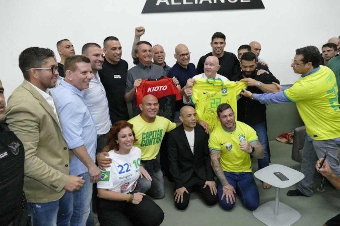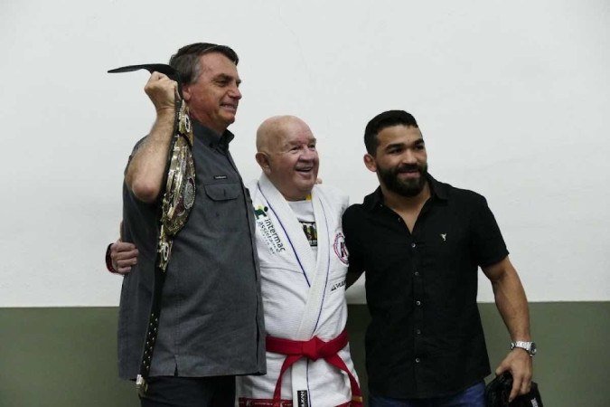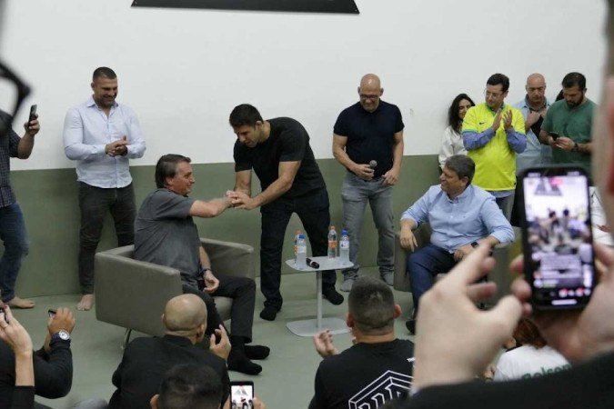 O chefe do Executivo foi presenteado pelo grupo com uma luva e um cinturão personalizados com a letra B estampada. Um dos atletas ironizou afirmando que a luva “é para 10 dedos”. Outro lutador, um grão-mestre do jiu-jitsu, fingiu ser o petista enquanto Bolsonaro simulava socá-lo. “Se tivesse com roupão vermelho, tinha enchido de porrada já”, apontou o presidente, levando os presentes aos risos.