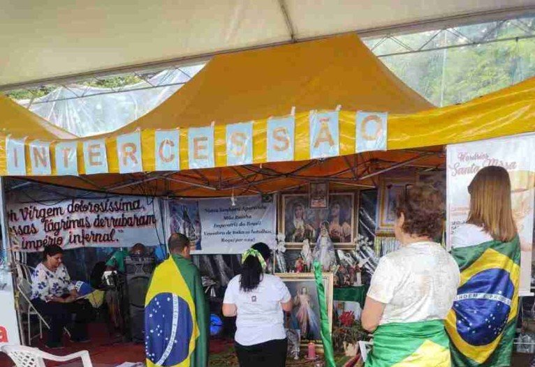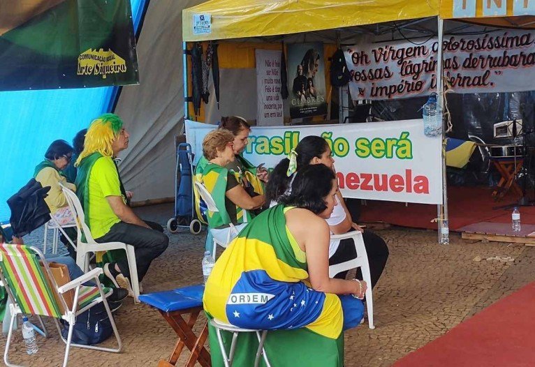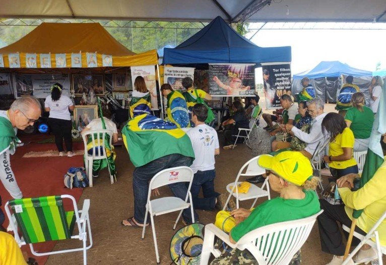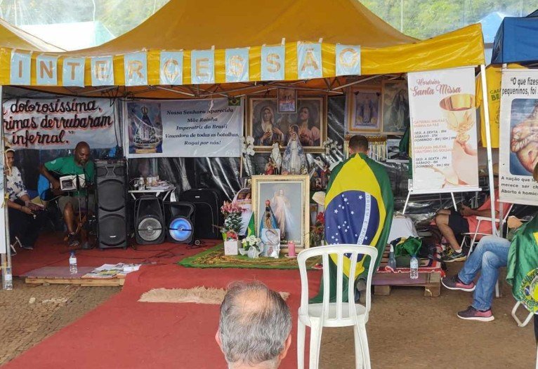 O Correio esteve no local, e flagrou algumas barracas montadas, estrutura com banheiros químicos e fila para almoço dos bolsonaristas. Na tenda montada para a missa improvisada, os manifestantes rezaram ajoelhados, choraram e cantavam. Um homem, que se identificou como cientista político e professor de seministaristas, guiou a cerimônia. Ele disse que esperava um golpe de Estado por parte de Bolsonaro.
