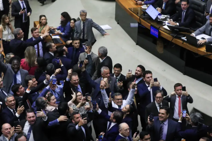 “Eu queria agradecer a alguns governadores, que trabalharam muito nesta noite. Governador Tarcísio, de São Paulo, que inclusive já foi atacado na outra tribuna porque começam a se preocupar com o Tarcísio. (...) Governador Tarcísio, receba do alto da tribuna da Câmara dos Deputados o nosso reconhecimento, a nossa gratidão por todo o seu empenho”, destacou o deputado.