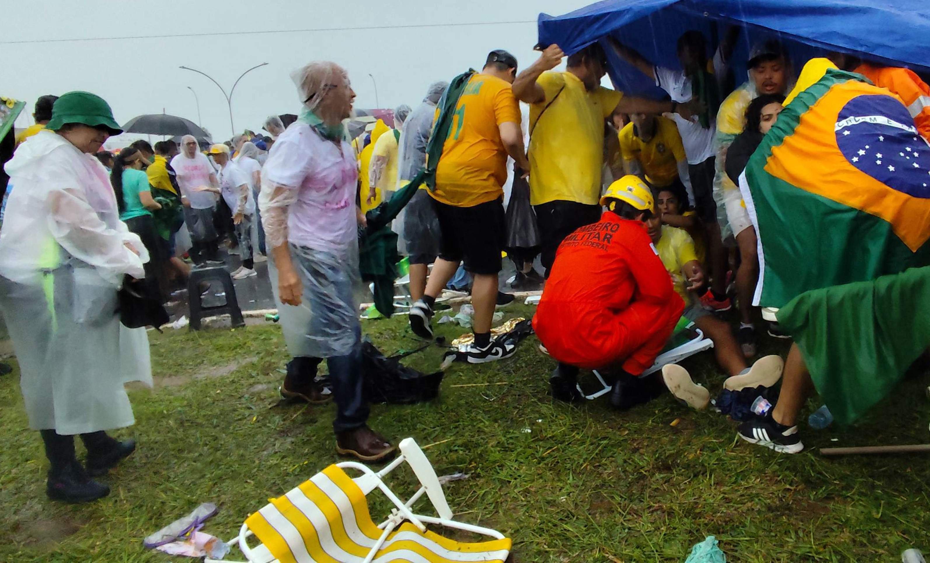 A mobilização terminou sob forte chuva na capital federal e foi marcada por um grave incidente, quando um raio atingiu manifestantes, deixando dezenas de feridos, segundo o Corpo de Bombeiros.