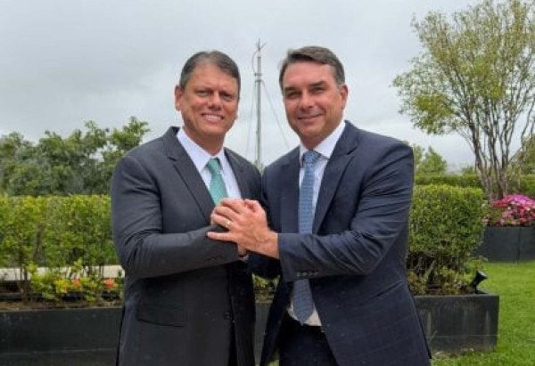 Aliados, Flávio e Tarcísio terão sua primeira agenda pública juntos em São Paulo durante a feira. O governador chegou a ser cotado para representar o bolsonarismo na disputa presidencial, mas Flávio foi o candidato escolhido.