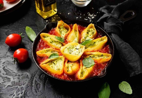 Conchiglione recheado com ricota e espinafre