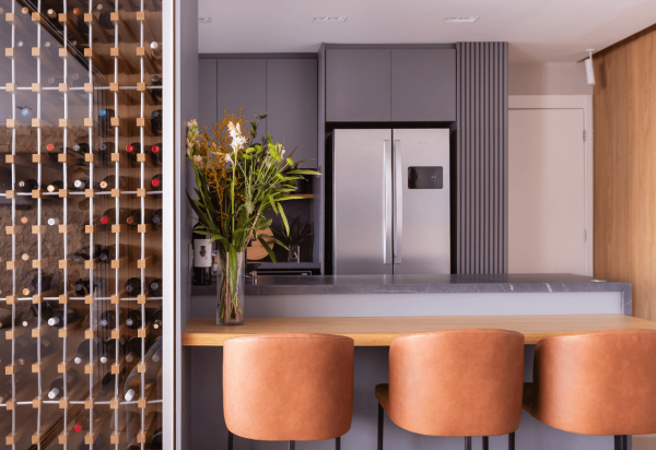 “A incorporação no projeto vai além da simples instalação de um equipamento: requer um planejamento cuidadoso que considere o conceito do ambiente, a quantidade de rótulos a serem armazenados e a forma como a adega se relacionará com os demais elementos do espaço”, conclui Raphael Martins.