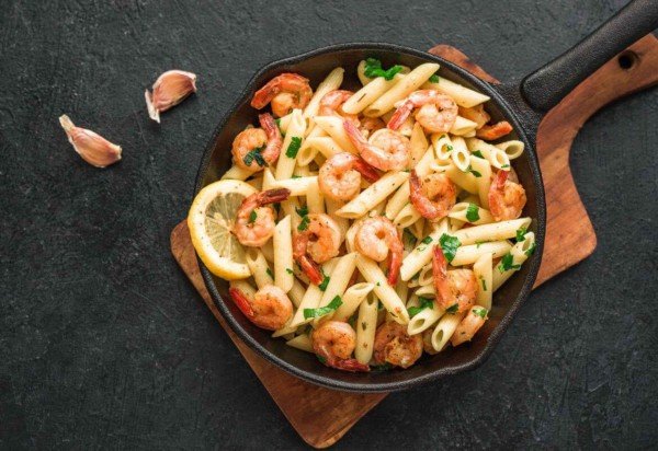 Penne com camarão e limão