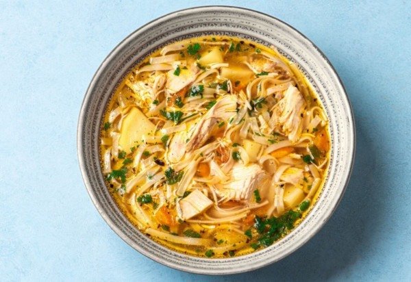 Sopa de macarrão com frango e legumes