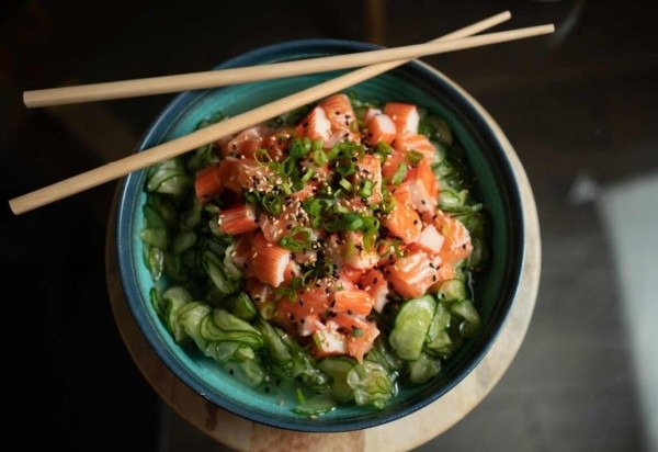 Sunomono com salmão e kani