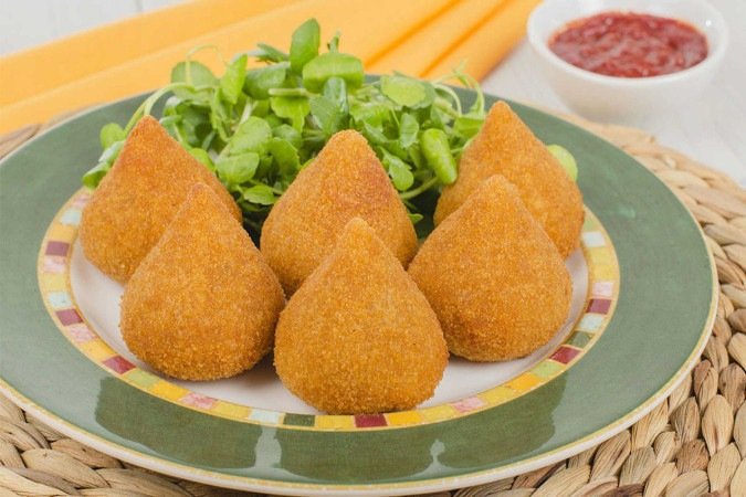 1. Coxinha vegana recheada com proteína de soja