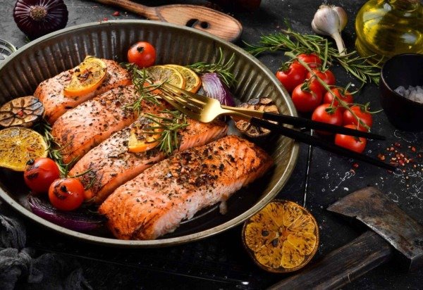 Salmão assado com alecrim