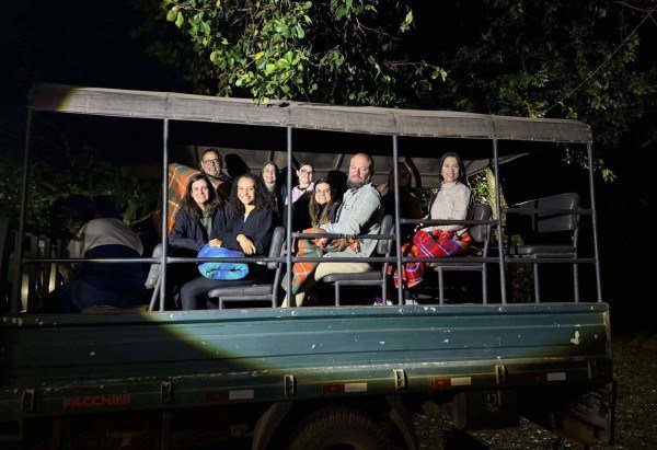 Durante a estadia, a vivência pantaneira incluiu uma pescaria de piranhas, atividade tradicional da região, seguida de uma experiência gastronômica igualmente local: o pirão preparado com o próprio peixe. Simples e carregado de significado, o prato traduz a relação histórica entre o homem e o território. À noite, um safari guiado permitiu observar espécies típicas da região, enquanto o jantar regional foi servido em meio ao som constante da natureza.