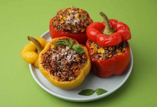 1. Pimentões recheados com quinoa e milho-verde