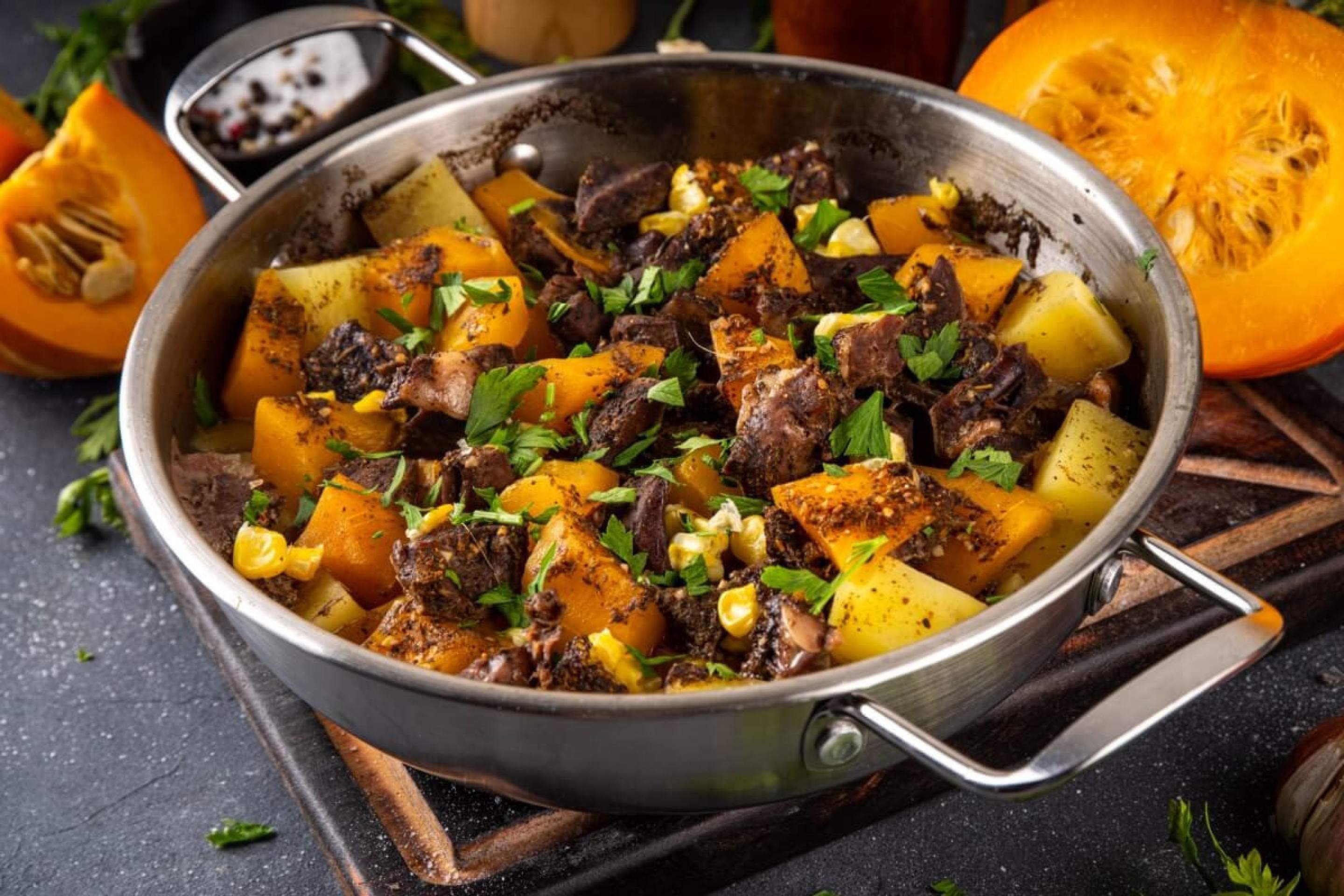 1. Carne refogada com abóbora