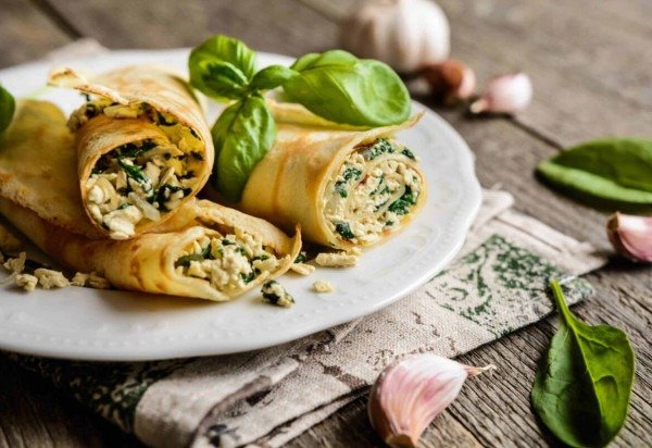 1. Panqueca recheada com tofu e espinafre