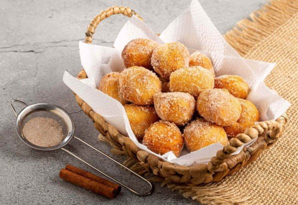 Em uma panela, aqueça o óleo em fogo médio. Com o auxílio de duas colheres, modele pequenas porções de massa e coloque no óleo quente. Frite até que os bolinhos estejam dourados por fora, virando para fritarem de maneira uniforme. Retire os bolinhos da panela, escorra e coloque no papel-toalha para retirar o excesso de óleo. Em um recipiente, misture o restante do açúcar com a canela em pó. Passe os bolinhos ainda mornos nessa mistura até ficarem bem envolvidos. Sirva em seguida.