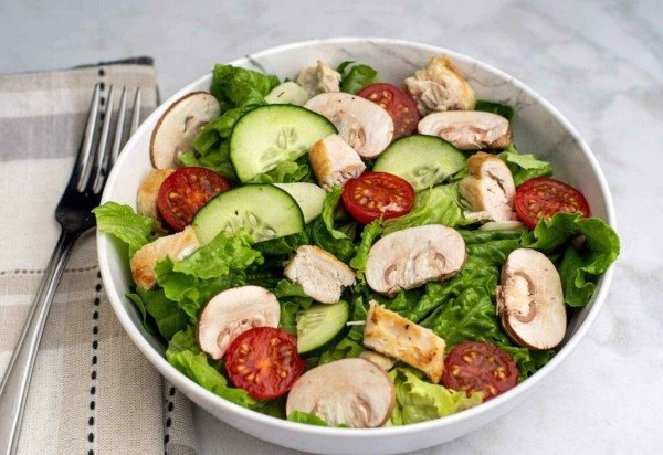 1. Salada com frango e cogumelo
