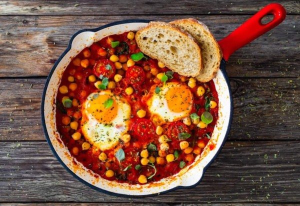 1. Ovos cozidos com molho de tomate e grão-de-bico