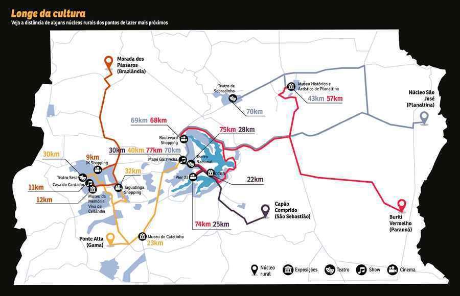 Assegurados pela Constituição, os direitos ao lazer e à mobilidade andam juntos quando se trata dos habitantes dos núcleos rurais. Com a concentração dos espaços de cultura e entretenimento em áreas centrais, os moradores das zonas periféricas dependem de transporte de qualidade para usufruir desses locais. Caso contrário, além de a qualidade de vida dessa população ser prejudicada, a disparidade social entre a cidade e o campo tende a se acentuar ainda mais.