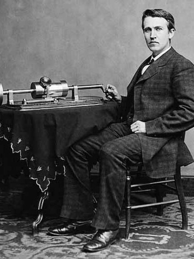 Em 1877, ele inventou o fonógrafo, que evoluiu os toca-discos. O aparelho consistia em um cilindro coberto com papel de alumínio. Conectados à ponta, ficavam um diafragma (um disco fino em um receptor onde as vibrações eram convertidas de sinais eletrônicos para sinais acústicos.